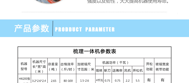 產(chǎn)品簡介:單體精細梳理機中配款,在選用制造材料上嚴格把關(guān),經(jīng)過反復(fù)的改善,從而使得該機結(jié)構(gòu)更具有人性化,操作簡單,噪音低等優(yōu)點。